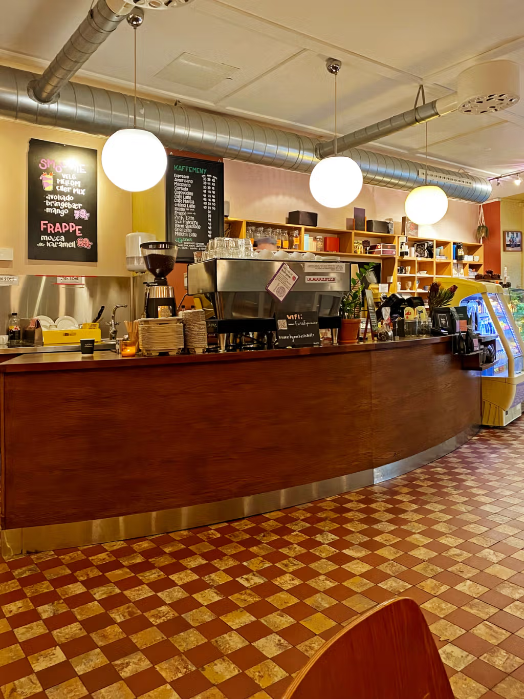Vi serverer ekte italiensk espresso, smoothies, frapper og søtsaker i et lokale fullt av sjarm, retro-mønstre og varmt lys. Velkommen inn.